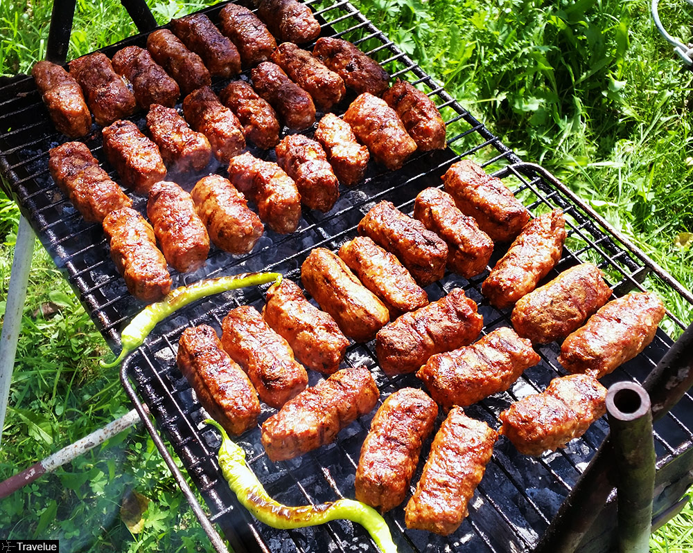 Mici, also known as mititei, are a popular street food in Romania. These small grilled sausages are made from a mixture of minced beef and pork, mixed with garlic, paprika, and other spices. Mici are typically served with mustard and bread, and are a favorite during summer barbecues and festivals.