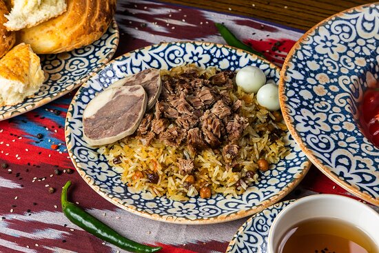 Plov is the national dish of Uzbekistan and a staple food in the region. It is a rice dish that is cooked with meat, vegetables, and spices. The dish is traditionally cooked in a large cast-iron pot called a kazan over an open fire. The main ingredient of plov is lamb, but it can also be made with beef, chicken or vegetables for vegetarians. The spices used in plov include cumin, black pepper, and bay leaves, and it is usually served with a side dish of salad or pickles. Plov is a hearty and delicious meal that will leave you feeling satisfied and full.